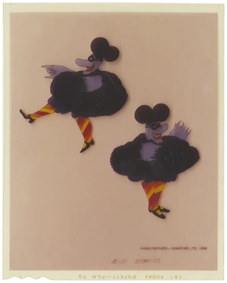Art Director Heinz Edelmann was hugely influential on the iconic visual style of the film. There is great dispute over who came up with the idea of "Blue Meanies"- Lennon, scriptwriter Erich Segal, and Edelmann all claimed to have invented them, but ultimately, it was Edelmann who designed them for the animation and brought them to life. His very distinctive artstyle gave Yellow Submarine so much personality, arguably majorly contributing to the success and critical acclaim of the film. But the process of creating Yellow Submarine wasn't all sunshine for Edelmann, either. The budget was low, the turnarounds were short, and production took a heavy toll on him. He came to hate the movie and even disagree with its ending, stating that the people of Pepperland killing and eating the Blue Meanies would be a preferable ending to them all living together in peace and harmony. He even drew it (Warning! It is rather disturbing, view at your own risk!).