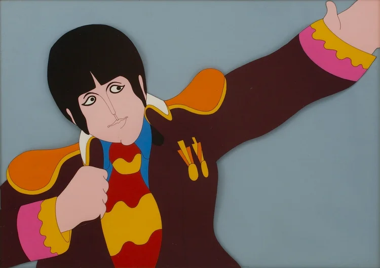 Animators would come into the studio to observe the Beatles, which got on their nerves, especially John's. George Harrison was quoted as saying that his favorite thing about Yellow Submarine is that they had nothing to do with it. UA did insist on the Beatles filming a short live-action segment for the very tail end of the movie, in which they appear already different from their animated counterparts in terms of hairstyles (and facial hairstyles, lol, those muttonchops are crazy).